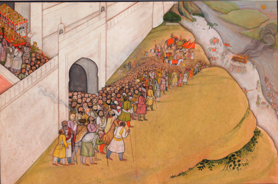 Guler or Kangra, The Funeral and Cremation of Rama's Father, Dasaratha: An Illustration from a Ramayana Series, Circa 1775, Gouache, heightened with gold, on paper, 205 x 307 mm. Fondation Custodia, Collection Frits Lugt, Paris, inv. 1990-T.4 By kind courtesy of Fondation Custodia, Collection Frits Lugt, Paris. Source credit: https://scroll.in/article/996128/in-an-18th-century-pahari-painting-of-dasrathas-funeral-vast-vistas-of-echoing-emptiness